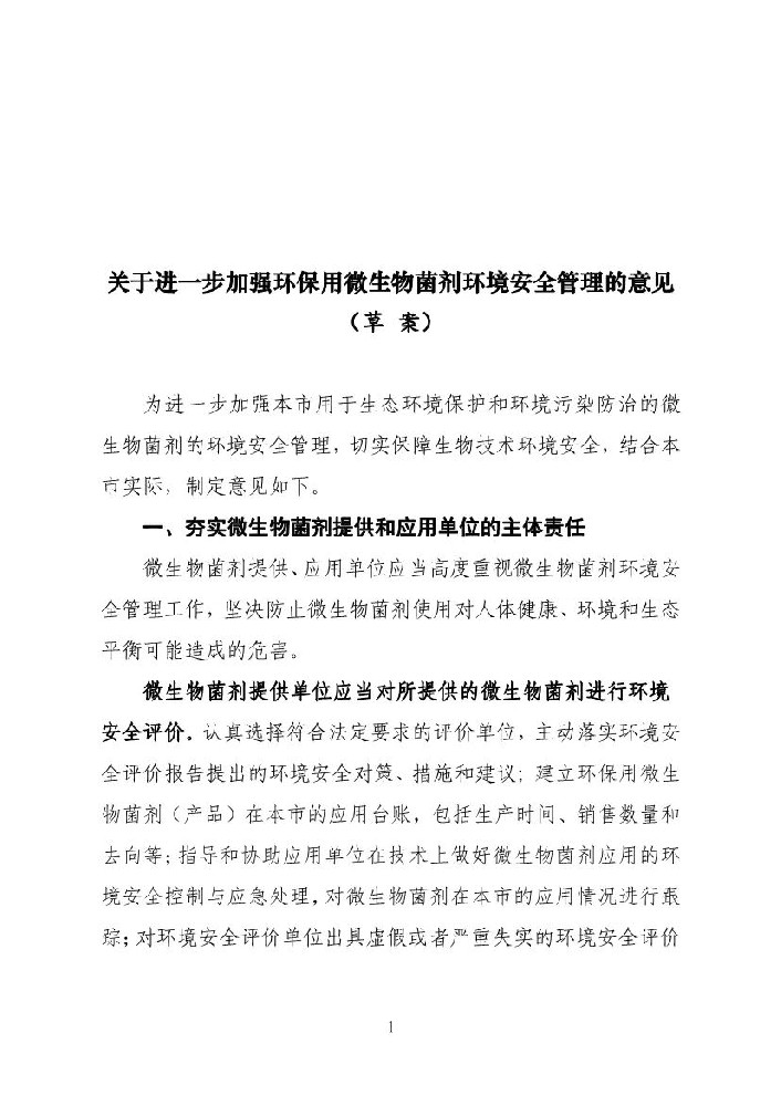 1、關(guān)于進(jìn)一步加強(qiáng)環(huán)保用微生物菌劑環(huán)境安全管理的意見(草案)